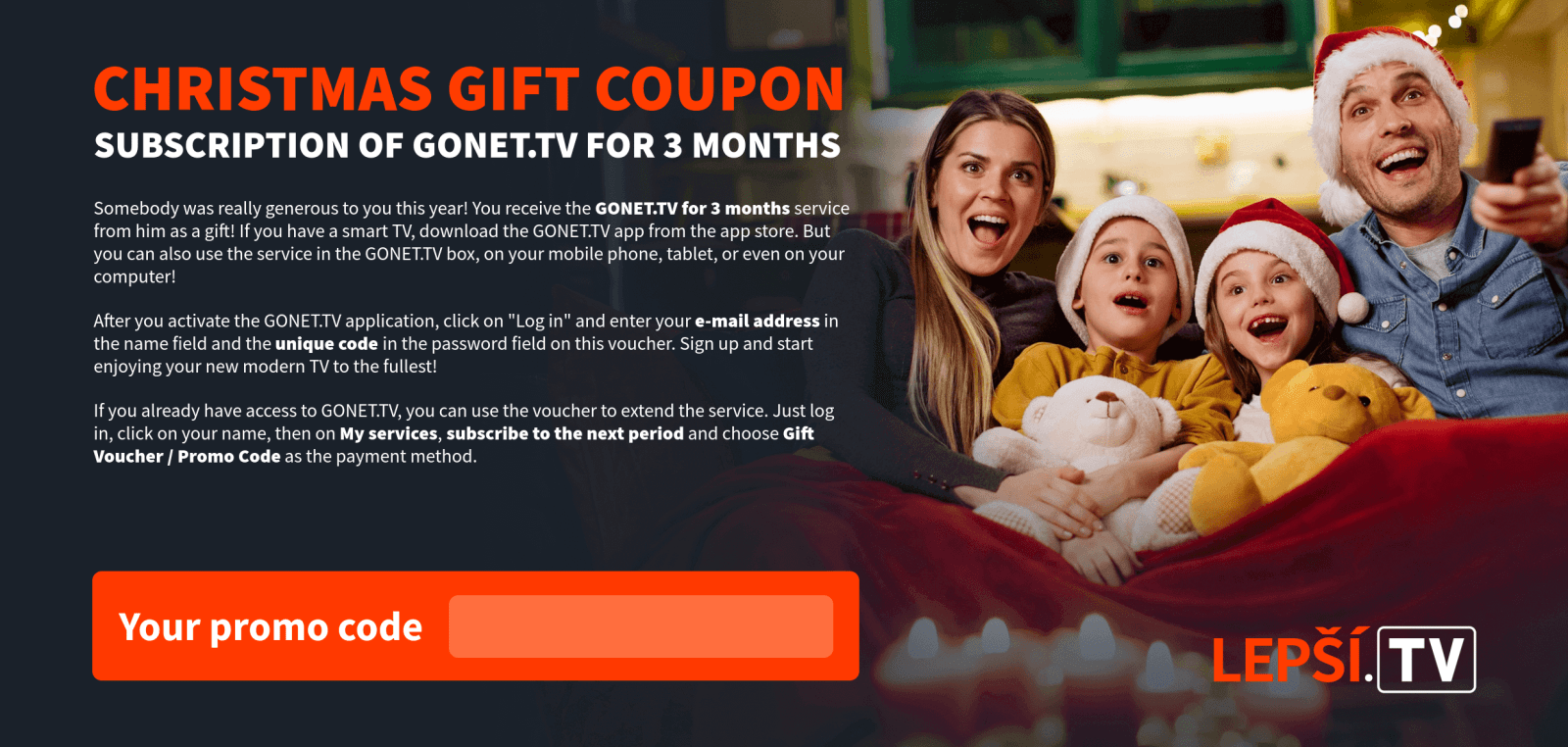 As soon as we receive your payment, the Lepší.TV service will be activated and we will inform you of the activation by e-mail.