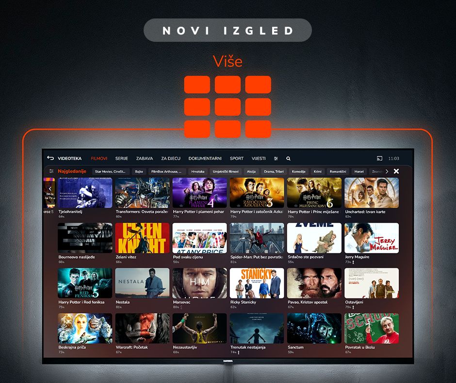 Za prošireni izbornik programa smo dodali novu pozadinu, što osigurava još bolju orijentaciju na GONET.TV-u. Ovaj vizualni element uvijek jasno definira da se nalazite u proširenoj verziji određenog odjeljka i time olakšava navigaciju aplikacijom.